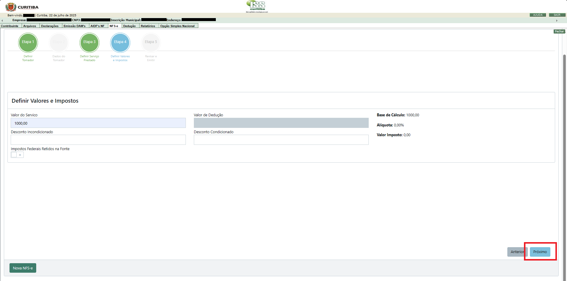 07) Informar o valor do serviço e clicar em Próximo: