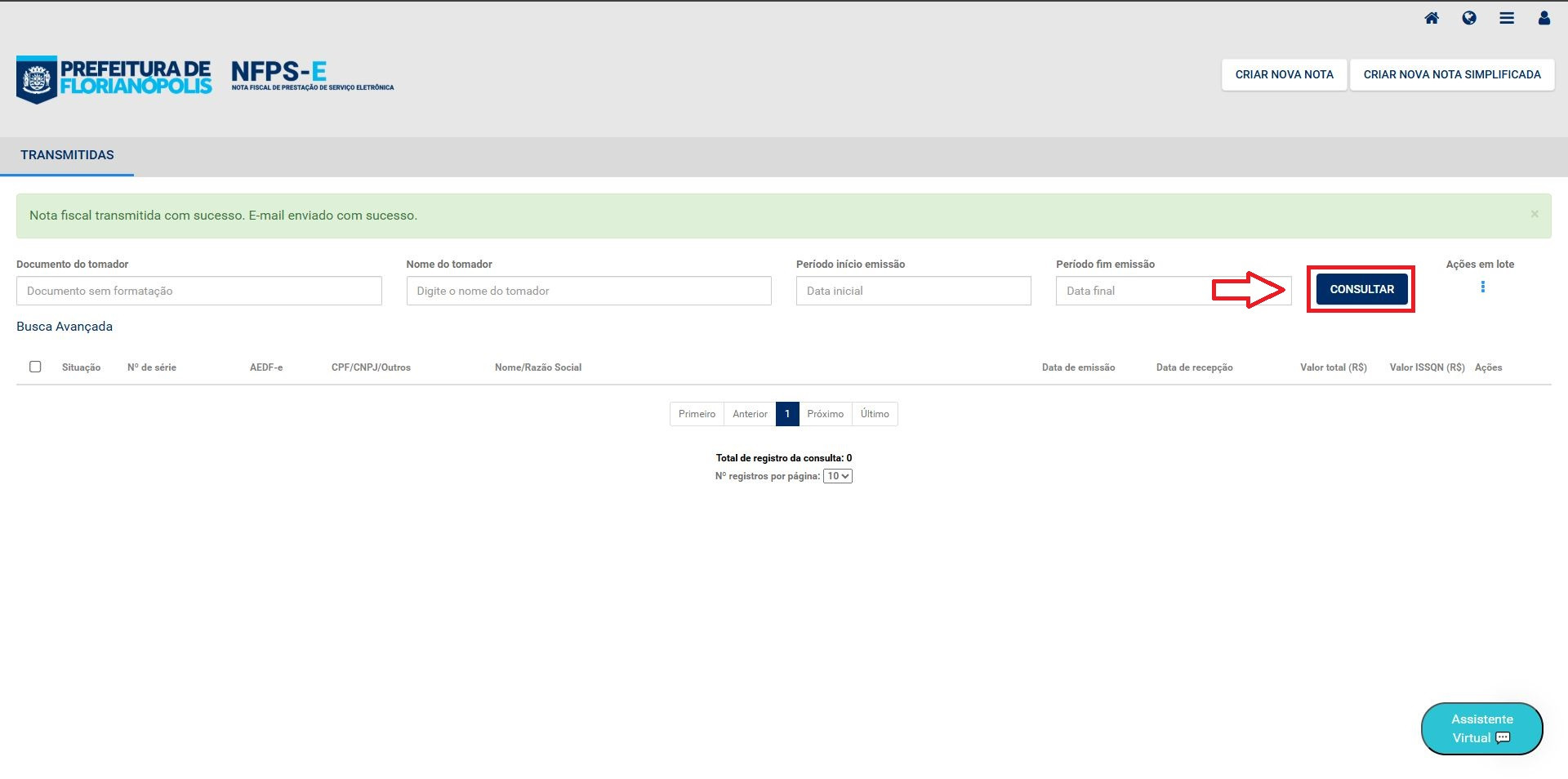 14- para emitir o PDF da nota, clique em consultar.