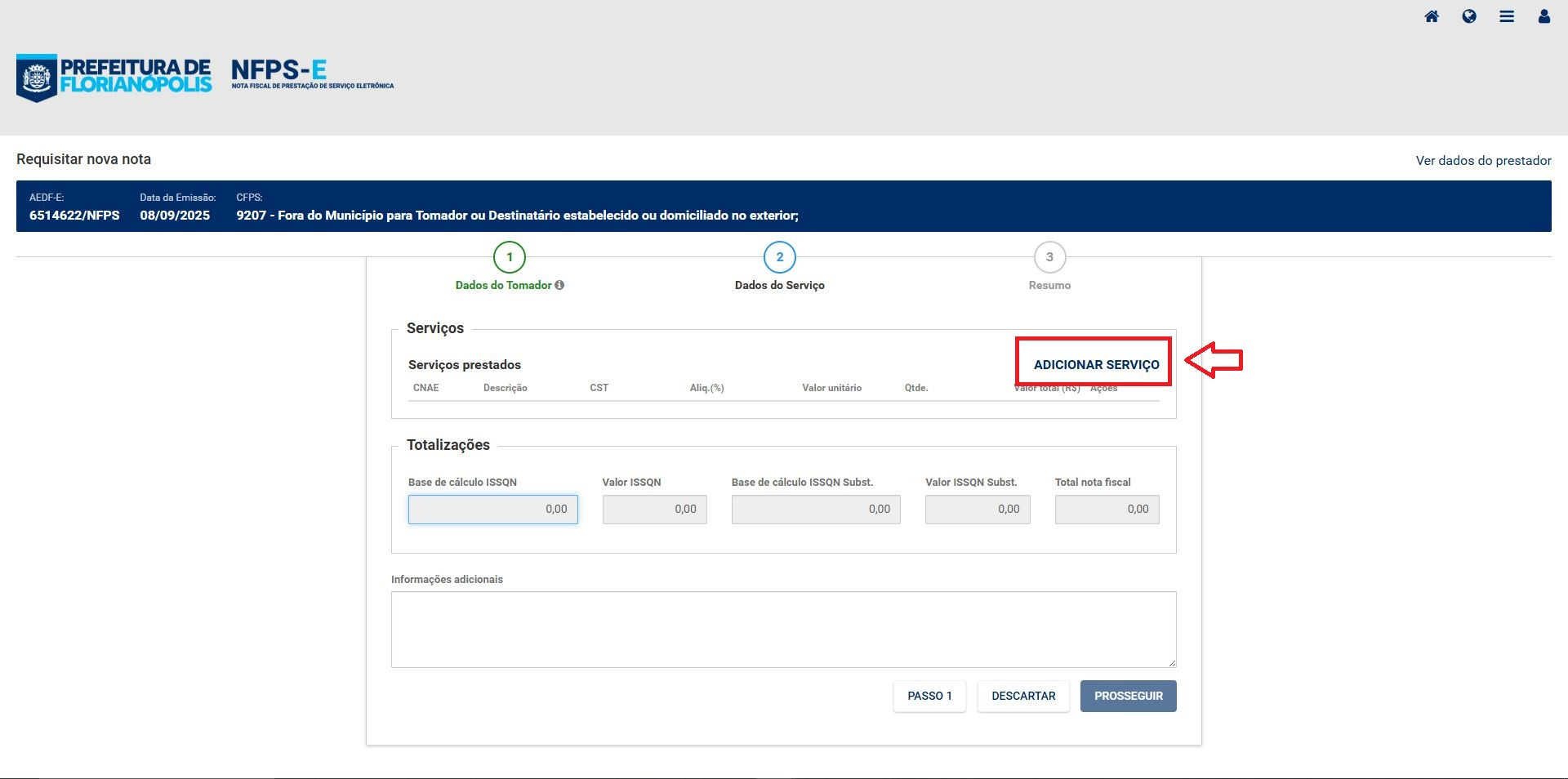 9- Clique em "ADICIONAR SERVIÇO".
