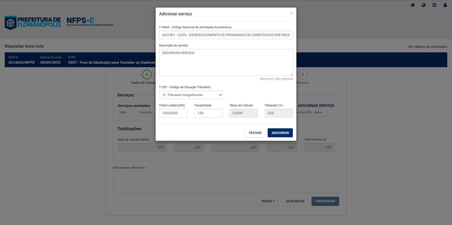11- Lance os dados conforme o serviço prestado.