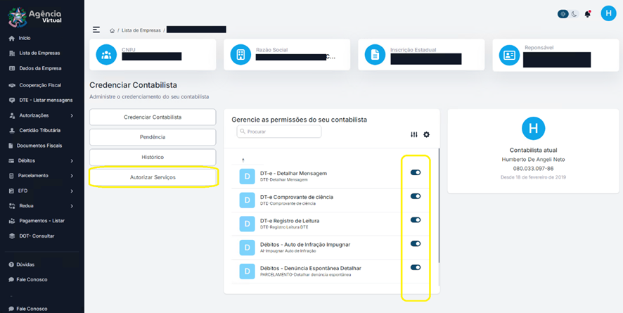 É importante fazer a autorização de acesso a Agência Virtual para que a contabilidade consiga acompanhar os dados de emissão de notas, compras e possíveis notificações/avisos da Sefaz pela Agência.